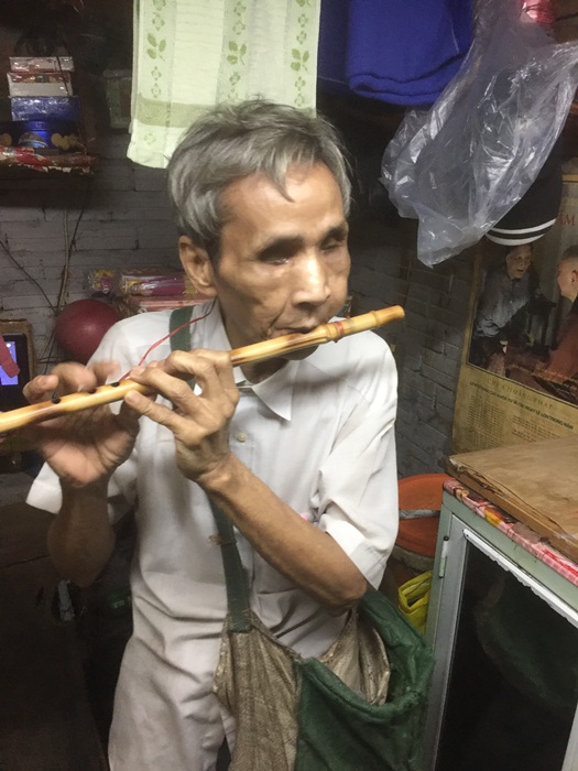 Cứ từ 16 giờ, ông rời nhà. Ông mang trên người một giỏ xách chứa đầy nhang. Chiếc sáo trúc được ông cẩn thận cầm trên tay. Ra khỏi hẻm, ông lên chiếc xe ôm quen thuộc. Không cần nói đi đâu, chỉ cần biết hôm nay thứ mấy là anh xe ôm chở ông đến đúng điểm đến.