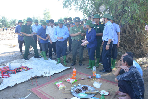 Phó Thủ tướng Thường trực Trương Hòa Bình thắp hương, động viên các gia đình có người thân mất tích tại thị xã Nghĩa Lộ, tỉnh Yên Bái Ảnh: Huy Thanh