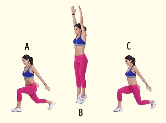 Chuẩn bị ở tư thế chân trước chùng gối, chân sau bước dài, lưng giữ thẳng, hai tay đưa về phía sau. Chụm chân bật nhảy, đưa hai tay thẳng lên trời sau đó tiếp đất, đổi chân. Lặp lại động tác 30 lần.