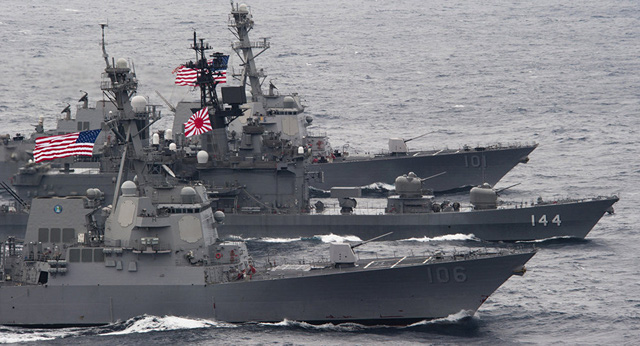 Các tàu hải quân của Mỹ và Nhật Bản diễn tập chung (Ảnh: Sputnik)
