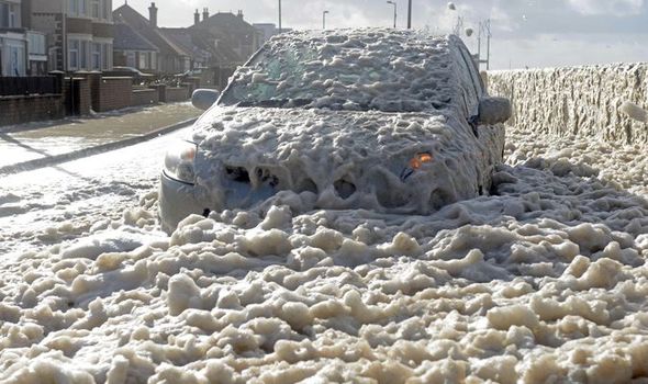 Và tại thị trấn Cleveleys, cơn bão tiếp tục gây ra một sự “phi thường” khác – toàn bộ thị trấn bị bao trùm bởi bọt trắng.
