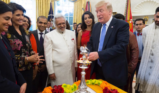 Tổng thống Donald Trump mừng lễ Diwali của Ấn Độ với các nhân viên cấp cao gốc Ấn tại Nhà Trắng hôm 18-10 Ảnh: PTI