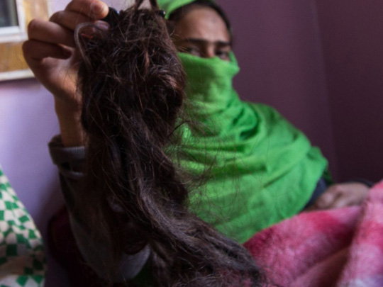 Vào một ngày đầu tháng 10, cô Shaqeela Sajad đang quét hiên nhà thì bất ngờ bị một người đàn ông đeo mặt nạ cầm kéo xông tới tấn công bằng thuốc mê. "Khi tỉnh lại trong bệnh viện, tôi phát hiện bím tóc của mình bị cắt mất" - cô Sajad nói.