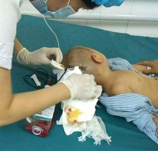 Cháu Bảo sau đó được chuyển đến Bệnh viện đa khoa tỉnh Hưng Yên và được các bác sĩ chẩn đoán 1/4 não bộ của cháu bị tụ máu, đang có dấu hiệu hôn mê và yêu cầu gia đình quyết định nhanh đồng thời ký giấy mổ để cứu tính mạng của cháu.