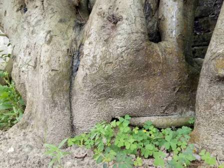 Rễ cây sần xù, uốn lượn tạo nên thế vững chãi...