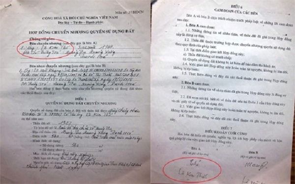 Ông Lê Kim Thớ (SN 1947), đã chết tháng 01/2007 nhưng vẫn có chữ ký trong hợp đồng chuyển nhượng năm 2008.