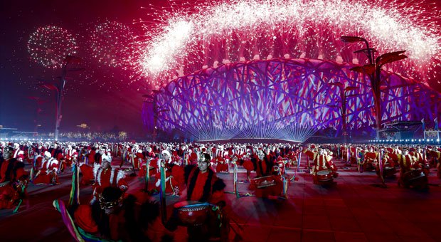 Water Cube được trang trí bằng hiệu ứng ánh sáng bởi 2.000 thiết bị chiếu sáng. Đại yến tiệc bao gồm màn ca múa nhạc với hiệu ứng ánh sáng đặc sắc và màn pháo hoa đầy ấn tượng.