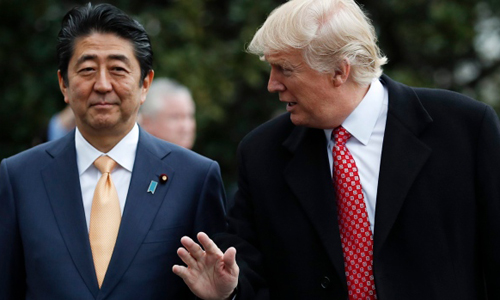 Tổng thống Mỹ Donald Trump (phải) và Thủ tướng Nhật Bản Shinzo Abe. Ảnh: AP.