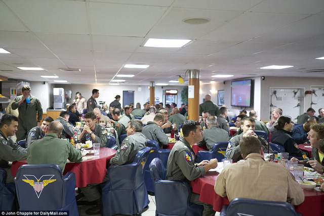 Evans, 27 tuổi, có 4 năm phục vụ trong Hải quân Mỹ đến từ Lawrenceville, bang Georgia, cho biết: “Mọi thứ đều phải chuẩn mực trên con tàu này, bạn phải dậy vào một giờ nhất định, ăn sáng và sẵn sàng cho bất kỳ khi nào có lệnh hoạt động xuất kích. Chúng tôi lên boong, mặc đồ và sẵn sàng để phóng máy bay. Một ngày làm việc thường kết thúc vào lúc 10h hoặc 11h tối – một ngày làm việc rất dài”.