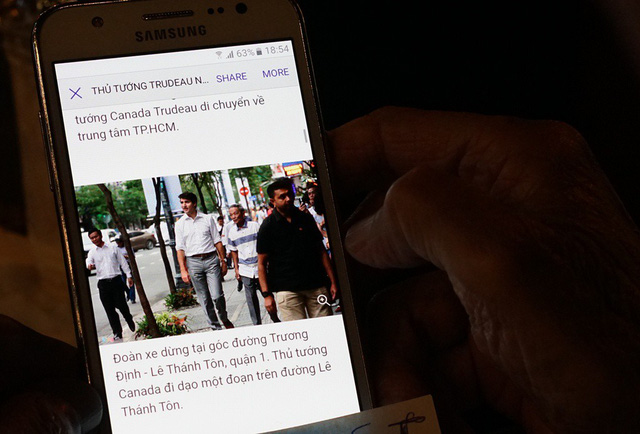 “Đoạn đi bộ trên phố đến quán cà phê, có lúc Thủ tướng Trudeau kéo tay tôi lại khi tôi đi hơi nhanh. Thủ tướng nói Sài Gòn mà ông từng đến vào năm 1995 bây giờ khác quá. Hình ảnh dòng xe cộ lưu thông làm ông chú ý”, ông Hiệp thích cái chất bình dị của ông Trudeau.
