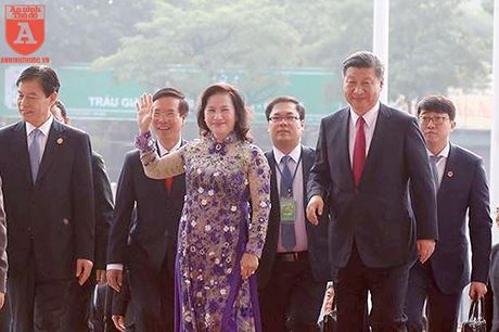 Chủ tịch Quốc hội Nguyễn Thị Kim Ngân cùng Tổng Bí thư Tập Cận Bình bước vào