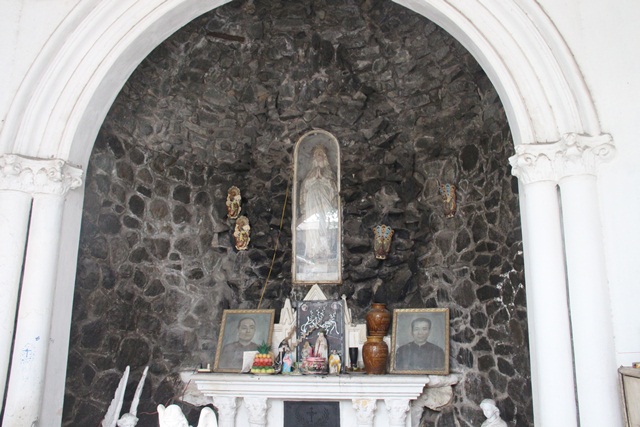 Được biết, phía bên phải mộ ông Tấn còn có một ngôi mộ khác chôn thấp hơn đang bị phủ lấp bởi các gói, thùng hàng của bà con chung quanh. Dời các thùng hàng qua một bên lộ ra ngôi mộ bằng đá đen. Có lẽ hàng hóa chất lâu ngày nhiều tạp chất dính vào nên chúng tôi chỉ đọc được: "Madalena Nguyễn Thị Thể, hưởng thọ 56 tuổi ...".