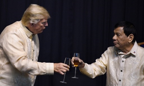 Tổng thống Mỹ Trump và Tổng thống Philippines Duterte tại tiệc ngày 12/11. Ảnh: AFP.