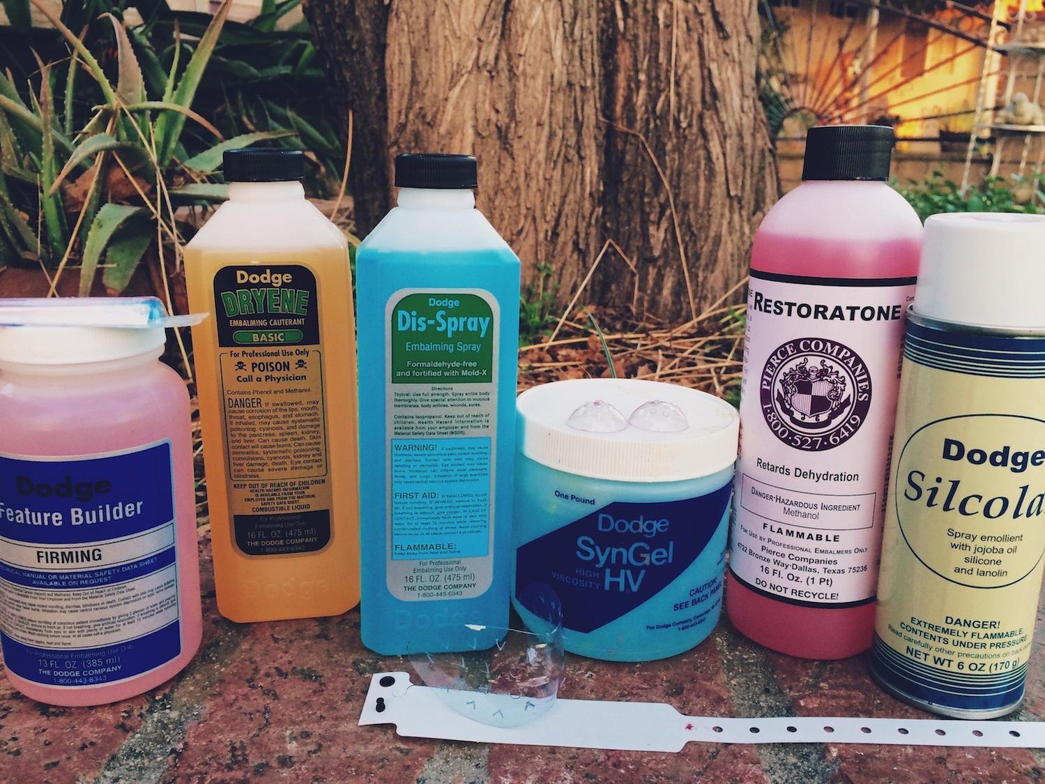 Có một loại thuốc nhuộm khá nặng được chỉ định dùng cho mấy người bị bệnh vàng da. Hoặc có một loại chất lỏng khác được gọi là "hàng nóng", là một loại chất lỏng có đặc tính hóa học cực mạnh được dùng để rút bớt nước ra khỏi mấy thi thể có nhiều nước và máu quá. Cũng còn một vài chất lỏng nữa, nói chung khi bạn nhận một cái xác, bạn sẽ có phương án phù hợp với thể trạng lúc mất của người đó. Thậm chí khi làm việc đủ lâu, bạn có thể chỉ nhìn cách mà cái xác phản ứng với mấy chất lỏng kể trên là biết người ta chết vì lý do gì.