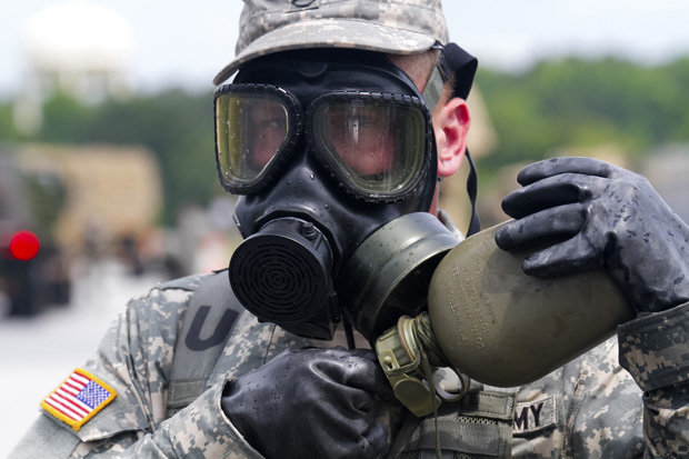 Lính Mỹ luyện tập chống vũ khí sinh học.