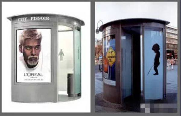 Một quảng cáo của hãng L’oreal được dán trên nhà vệ sinh công cộng của Wall AG.