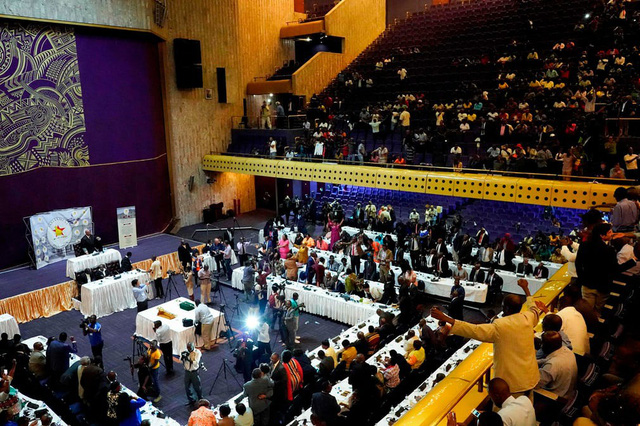 Bên trong hội trường quốc hội, các nghị sĩ đã đứng dậy và vỗ tay reo mừng sau thông báo chấm dứt 37 năm cầm quyền của Tổng thống Mugabe. (Ảnh: AFP)