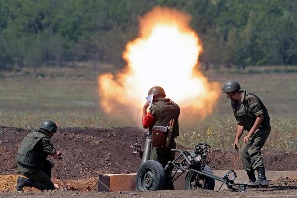 Cối hạng nặng 2S12 Sani được Liên Xô sản xuất từ năm 1981 và được trang bị trong Quân đội Nga suốt từ năm 1981 tới tận ngày nay. Khẩu cối này có trọng lượng lên tới 190 kg và có tầm bắn tối đa lên tới 7,1 km, sử dụng cỡ nòng 120mm. Nguồn ảnh: TASS.
