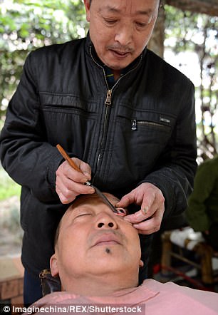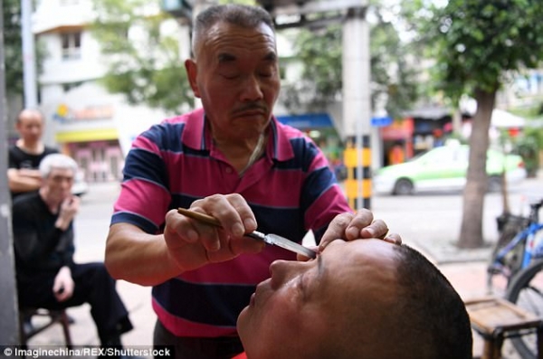 Ngoài làm nghề cắt tóc, những ông thợ cắt tóc ở Trung Quốc còn " cạo mắt " cho khách. Gỉ mắt của khách hàng sẽ được lấy ra bằng dao cạo. Khách hàng sẽ cảm thấy dễ chịu và nhìn rõ hơn sau khi " cạo mắt".