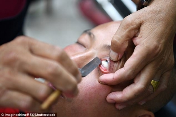 Theo Daily Mail, thợ cắt tóc Xiong Gauwu (62 tuổi) ở Thành Đô, tỉnh Tứ Xuyên, rất nổi tiếng với món nghề dùng dao cạo để lấy đi những thứ không sạch sẽ ở tận sâu trong mí mắt.