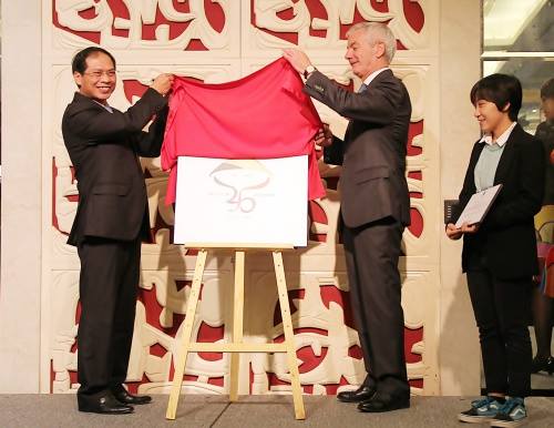 Thứ trưởng Ngoại giao Bùi Thanh Sơn và người đồng cấp Bỉ Dirk Achten hôm 23/11 công bố logo đoạt giải kỷ niệm 45 năm quan hệ ngoại giao hai nước.