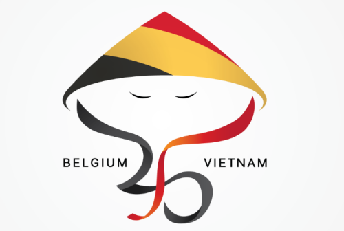 Logo đoạt giải thể hiện hình người đội nón, mang ba màu đen, vàng, đỏ của cờ Bỉ, hai dây lụa uốn lượn tạo thành số 45. Dây lụa bên trái tượng trưng cho Bỉ, sợi bên phải tượng trưng cho Việt Nam, hai sợi dây nối kết, cho thấy sự gắn bó bền bỉ giữa hai nước.