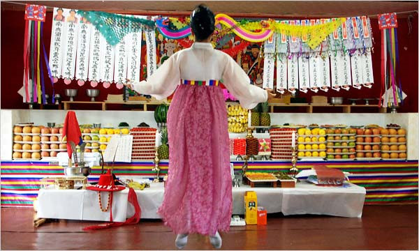 Một buổi lên đồng ở Hàn Quốc. Ảnh: New York Times.