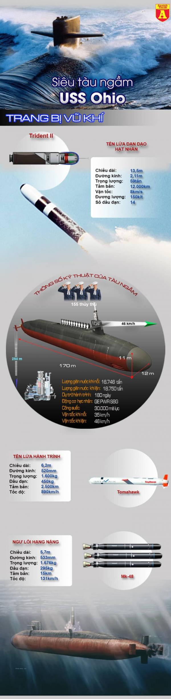 Thông số tàu ngầm USS Ohio (nguồn: An ninh Thủ đô)