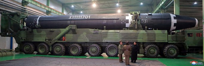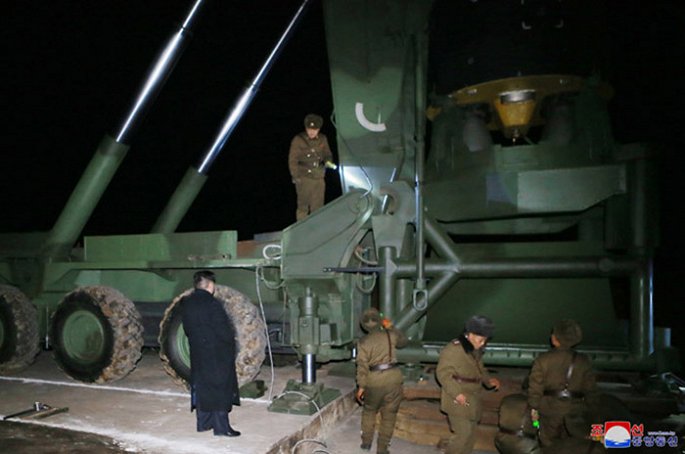 Sau khi phóng thành công tên lửa đạn đạo liên lục địa (ICBM) Hwasong-15, một loại vũ khí đặt Mỹ nằm trong tầm bắn. Triều Tiên mới đây đã công khai loạt hình ảnh về quá trình chuẩn bị phóng tên lửa Hwasong-15 ngày 29/11. Kim Jong Un trong hình ảnh không giấu nổi sự vui sướng khi tên lửa được phóng đi.