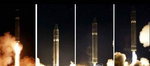Tên lửa Hwasong-15 rời bệ phóng. (Ảnh: Yonhap)