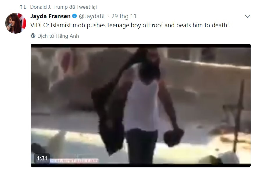 Tổng thống Trump đăng lại một video có nội dung chống Hồi giáo trên Twitter ngày 29/11.