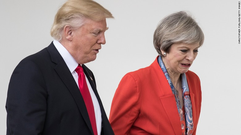 Thủ tướng Anh là lãnh đạo nước ngoài đầu tiên đến gặp Trump sau khi ông nhậm chức. Ảnh: CNN.