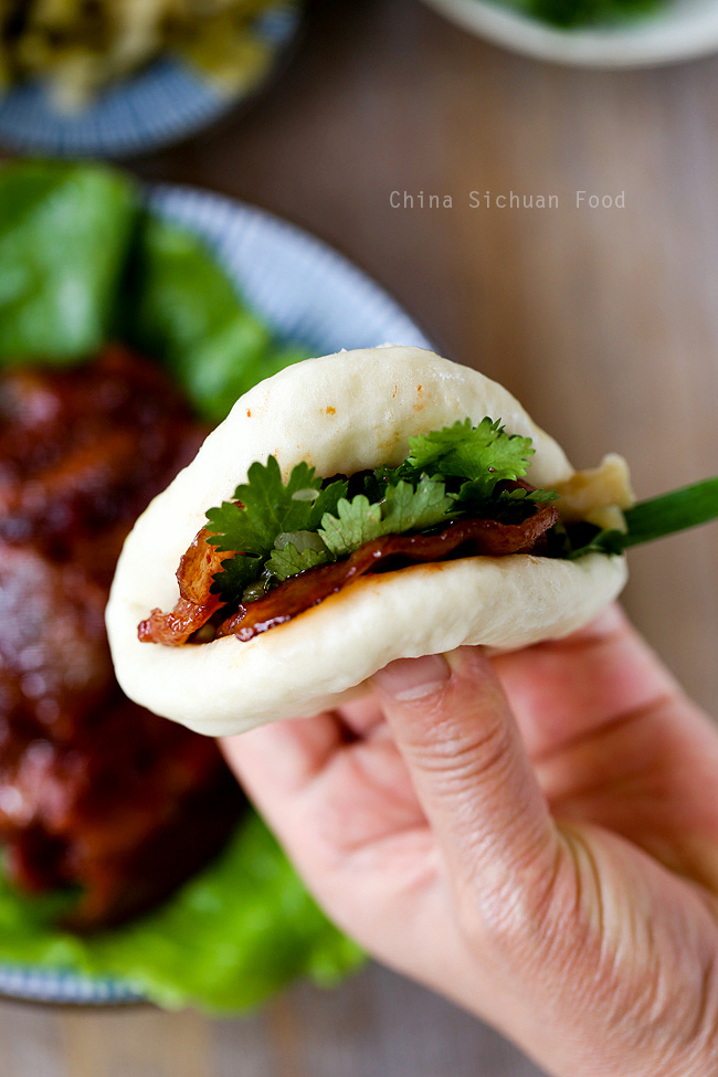 -Trong khi chờ ướp thịt th́ trộn tất cả nguyên liệu làm vỏ bánh vào một âu lớn, nhồi đến khi mịn rồi bọc màng bọc thực phẩm vào, khi thấy bột nở gấp đôi ban đầu th́ lấy bột ra nhồi lại một lần nữa sau đó chia thành từng phần nhỏ.