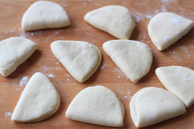 -Cán bột thành h́nh bầu dục dài, gập đôi lại đem đi hấp khoảng 10 phút, bánh chín gắp bánh ra để nguội.(ảnh 4)