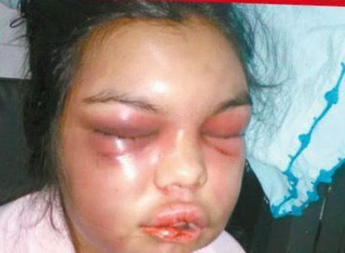 Khuôn mặt của Ortigoza sau nhiều ngày bị chồng đánh đấm hành hạ.