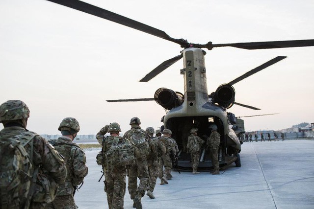 Các binh sĩ thuộc lực lượng quân đội Mỹ bước vào khoang máy bay (Ảnh: Reuters)