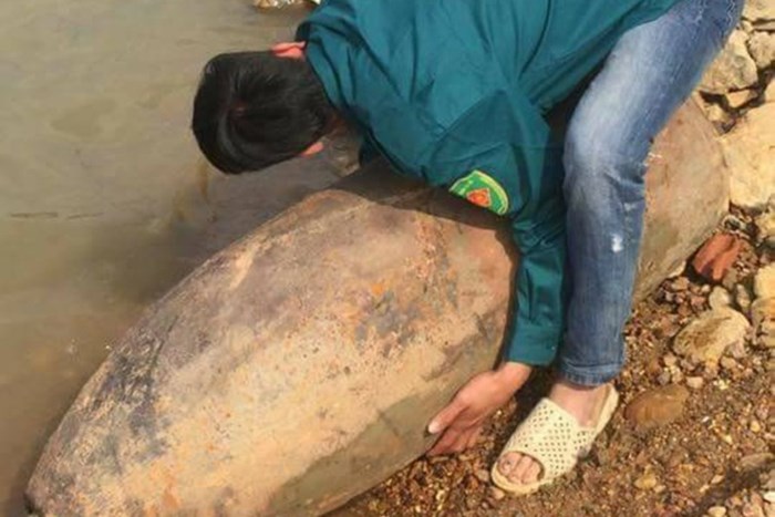 Trong lúc đang dò sắt ở trên sông Lô, đoạn qua địa phận huyện Lập Thạch (tỉnh Vĩnh Phúc), một ngư dân bất ngờ phát hiện một quả bom nằm ở ven sông, chiều dài khoảng 1,2 mét.