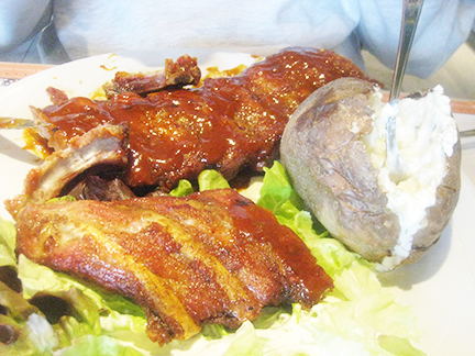 Ông xã chúng tôi chọn món sườn heo giống bên nhà khi xưa ngang qua bắc Mỹ Thuận được cha mẹ kêu mua đãi cho món này ăn với cơm chan nước mắm ớt quá ngon lành nhớ mãi không quên. Lúc đem ra nó dài thòn vắt ngang qua đĩa trông rất hấp dẫn, người ăn làm sao mà nghĩ tới được sự tàn sát các chú thiếm heo trong lò thịt để chừa ra không ăn chúng? Sự thật của thế kỷ 21 là giới trẻ ở Pháp đang chụp hình quay phim nhiều thảm cảnh nơi lò thịt làm xúc động rất nhiều người và cảnh tỉnh lương tâm để gia súc được quyền sống thiêng liêng trời cho.