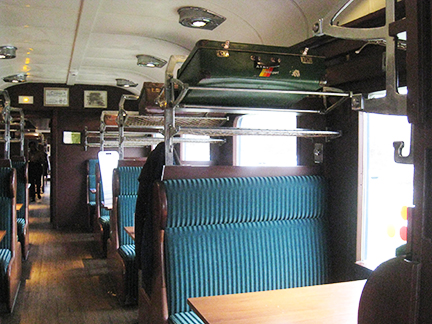 Toa xe lửa có bàn ăn nhìn từ bên trong ra ngoài. (Ngọc Diễm/ Viễn Đông)