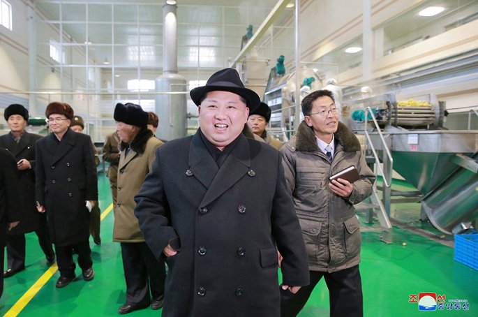 Giữa thời điểm tình hình bán đảo Triều Tiên căng thẳng sau khi Triều Tiên thử tên lửa Hwasong-15. Lãnh đạo Triều Tiên Kim Jong Un đi thăm nhà máy chế biến khoai tây. Ông Kim Jong Un xuất hiện với hình ảnh cười tươi rói.