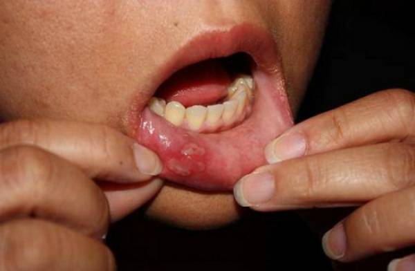 Những người bị nhiệt miệng thường sưng đau, xuất hiện vết loét trong khoang miệng gây trở ngại cho việc nhai, nuốt của người bệnh. Các vết loét thường xuất hiện ở lưỡi, má trong, lợi và một số vị trí khác trong khoang miệng. Vết loét có màu trắng sữa, khiến vùng xung quanh bị sưng đau, thậm chí là nổi hạch ở vùng quai hàm, hai bên má.