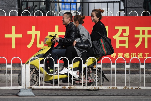 Một anh chở hai cô tại Bắc Kinh. (Getty Images)