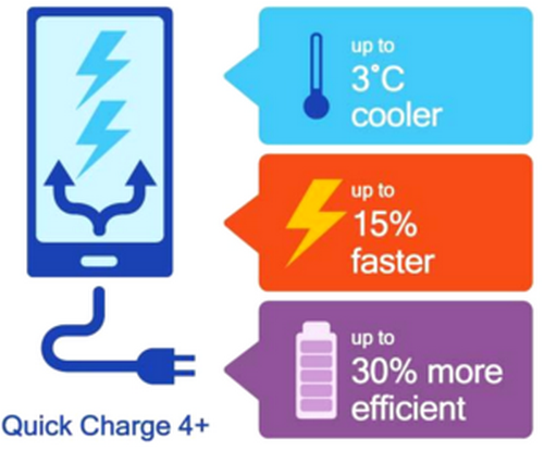 Nhờ sự kết hợp này, khả năng sạc của Quick Charge 4+ sẽ mang lại hiệu suất cao hơn 30%, tốc độ sạc cao hơn 15% so với Quick Charge 4 mà vẫn đảm bảo thiết bị luôn mát mẻ và an toàn. Trước đó, Qualcomm cho biết Quick Charge 4 có thể sạc 50% pin trong chưa đầy 15 phút. Thậm chí, hãng còn nhấn mạnh khả năng "5 for 5", tức 5 phút sạc là đủ dùng 5 tiếng đồng hồ.