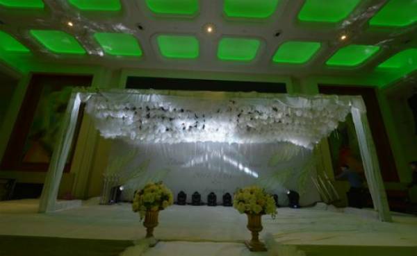 Toàn bộ lễ đường được phủ một màu trắng 'tinh khôi' với rất nhiều hoa trắng và vải trắng, tuy nhiên phần ánh sáng lại có phần u tối khiến khung cảnh tại đây trông giống đang tổ chức tang lễ hơn là hôn lễ. Những tấm vải lụa mỏng màu trắng được giăng khắp từ trong ra ngoài điểm thêm những bông hoa giả trắng trông cực kì u uất.