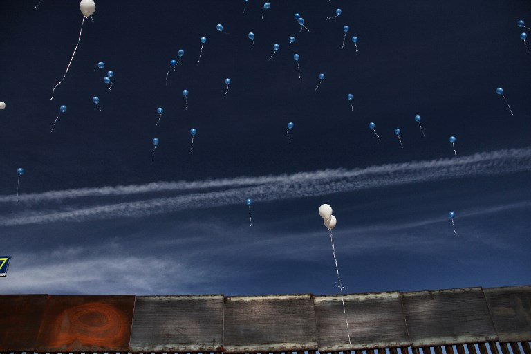 Những người tham gia buổi đoàn tụ thả bóng bay biểu tượng cho hòa bình và tình yêu gia đình. Trong khi Tổng thống Trump và các nghị sĩ Cộng hòa coi DACA là một sắc lệnh hành pháp vượt quá thẩm quyền của cựu tổng thống Obama, những người phản đối việc siết chặt luật nhập cư coi việc chấm dứt DACA là "chính sách vô đạo đức tạo ra cuộc khủng hoảng nhân đạo tại Mỹ trong nhiều năm tới". Ảnh: AFP.