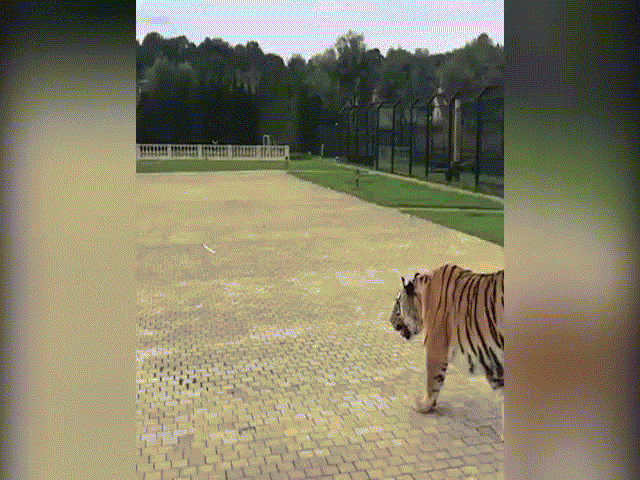 Nhưng khi người đàn ông bắt đầu rung chuông, con vật nhanh chóng quay đầu và chạy ra bãi cỏ. Video tiếp diễn khi con hổ chạy ra xa trong khi người đàn ông tiếp tục đuổi theo.