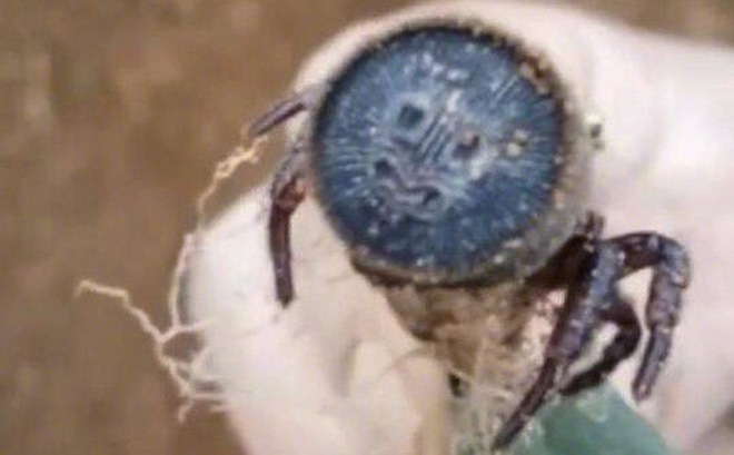 Ngoài ra, anh này còn phát hiện con vật kỳ dị này không hề động đậy. Về sau, anh đem nó về nhà và lên mạng tìm hiểu, mới thấy nó rất giống với loài nhện hiếm thuộc chi Cyclocosmia ricketti, có phần đuôi nhìn hệt như mặt quỷ.