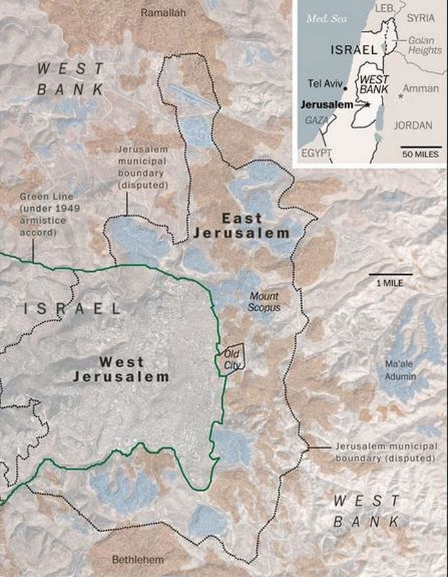 Israel luôn yêu cầu cộng đồng quốc tế công nhận Jerusalem là thủ đô của họ, nhưng không nhận được sự ủng hộ. Mặc dù toàn bộ Jerusalem do Israel kiểm soát, Palestine cũng không thể ngăn chặn Israel, nhưng đằng sau Palestine còn có cả thế giới Hồi giáo.