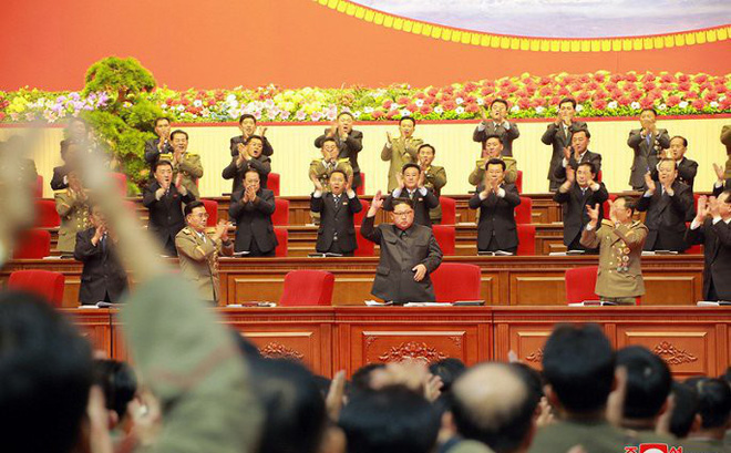 Ông Kim Jong-un tham dự lễ bế mạc Hội nghị Công nghiệp Quốc pḥng lần thứ 8. Ảnh: KCNA