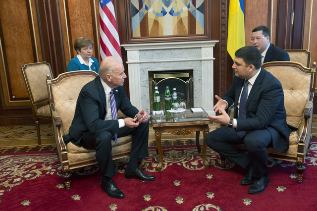 Stanislav Yezhov làm phiên dịch cho lãnh đạo Ukraine trong cuộc gặp với Phó Tổng thống Mỹ Joe Biden năm 2016 (Ảnh: BBC)